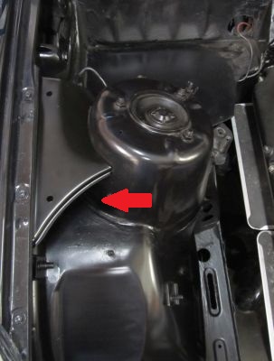 Lasplaat om de standaard veerpoottoren te verstevigen. Bmw gebruikte dit type versteviging op het cabrio chassis.