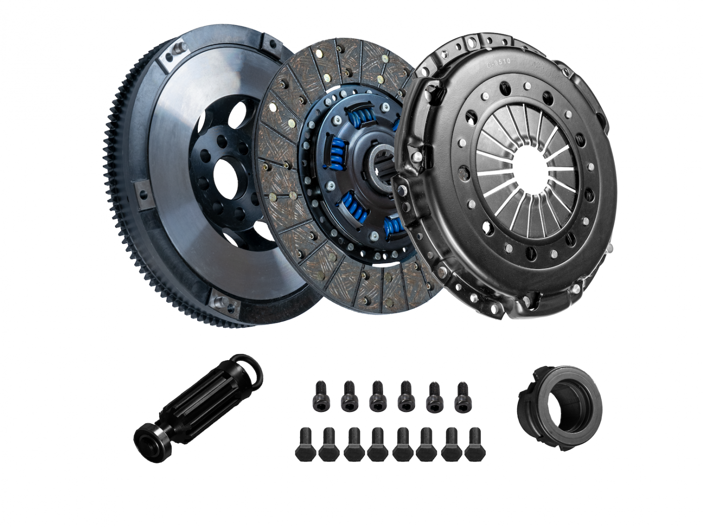 Kit komt inclusief druklager en vliegwielbouten, klaar voor installatie.