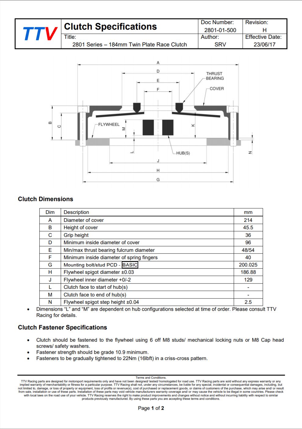 Een dubbelplaats koppeling set met cover en frictie plaat. Geschikt voor alle TTV 184mm vlliegwielen.